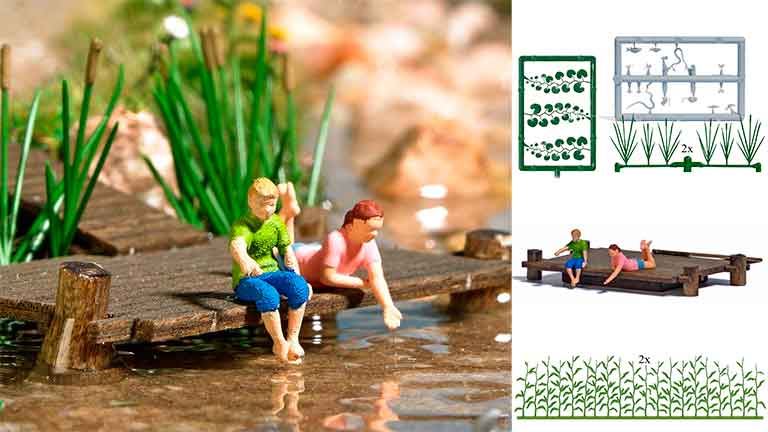 Модель BUSCH 79818 — Кормление рыб (2 фигурки, причал, растения и животные), 1:87.