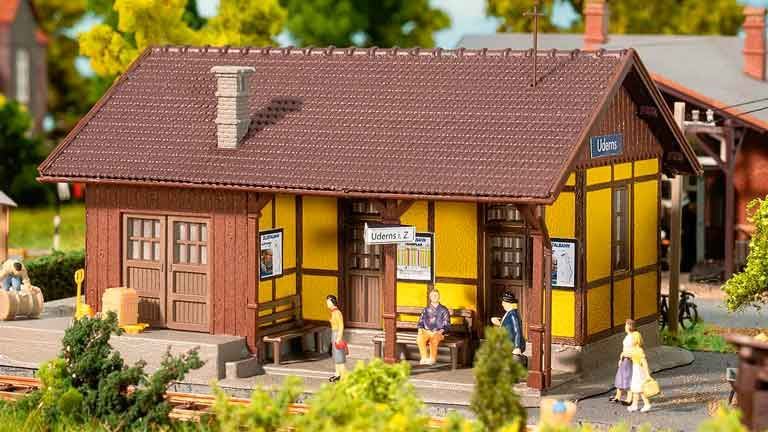 Масштабный набор «Железнодорожная станция «Uderns» из цветного пластика для самостоятельной сборки рекомендуется для диорам в масштабе 1/87 и железнодорожных макетов типоразмера Н0 (1:87). Размеры: 170 x 102 x 88 мм. Окраска не требуется. Клей в набор не входит.