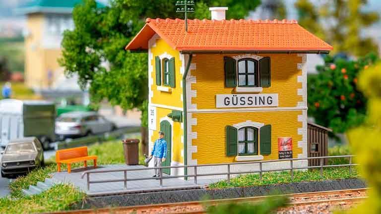 Как и вокзал "Гюссинг", этот домик смотрителя впечатляет своей яркой цветовой гаммой ярко–желтого цвета - он по-настоящему привлекает внимание на любом объекте. Цоколь, карниз и фриз напечатаны цифровым способом и создают белые акценты. Идеально подходит для добавления нового слоя краски в ландшафт модельной железной дороги.