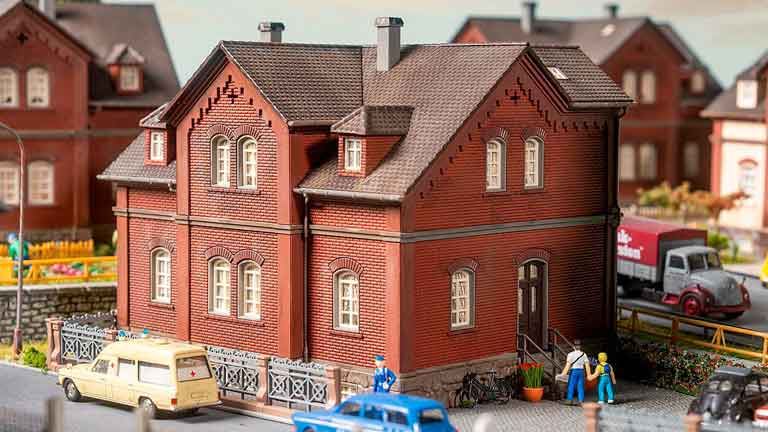 Частичка Рурского региона для вашего модельного мира: Дом brown estate с классической скатной крышей и характерными кирпичными элементами вдохновлен историческими домами рабочих на угольном комплексе Бергманнсплац в Дуйсбурге-Ноймюле, который входит в список Всемирного наследия ЮНЕСКО.