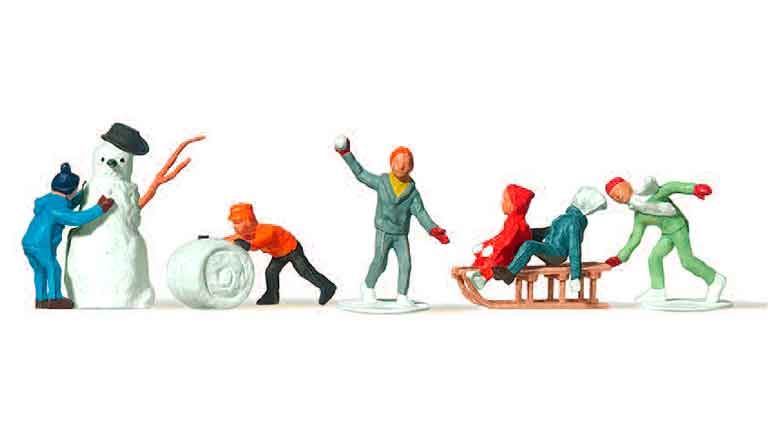 Масштабный модельный набор из окрашенных фигурок «Дети со снеговиком и санками» из пластика рекомендуется для диорам в масштабе 1/87 и железнодорожных макетов типоразмера Н0 (1:87). Окраска фигур не требуется (цвет, ассортимент и дизайн может отличаться от представленного на иллюстрации). Для установки фигурок рекомендуется использовать термоклей.