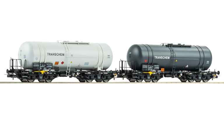 Масштабные модели (2 вагона) железнодорожных цистерн «TRANSCHEM» 406Rb произведёны в полном соответствии оригиналу в историческом и техническом плане. Окраска моделей не требуется. Сцепка NEM 362. Длина по буферам одного вагона ~142 мм. Рекомендуется для железнодорожных макетов в масштабе 1:87.