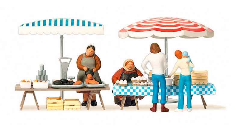 Модель PREISER 10052 — Рыночные прилавки и 4 фигурки, 1:87.
