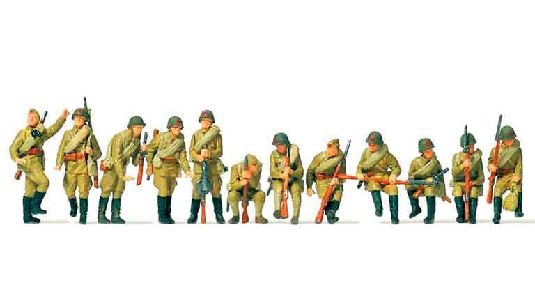 Модель PREISER 16545 — Отдыхающие мотострелки СССР (12 неокрашенных фигурок), 1:87, 1942, РККА.