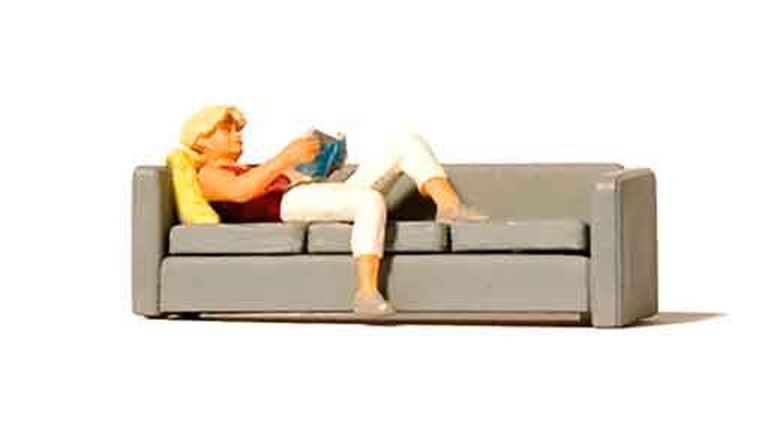 Модель PREISER 28179 — Женщина читает на диване (эксклюзивная фигурка и принадлежности), 1:87.