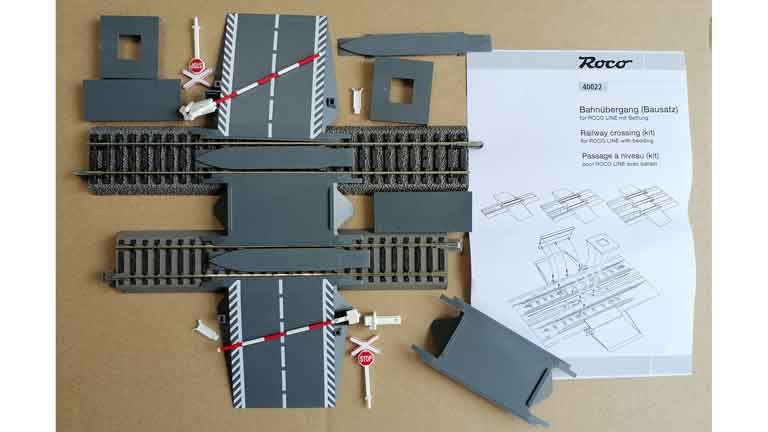 Модель ROCO 40022 — Железнодорожный переезд для рельс на насыпи ROCO, PIKO и др., H0.