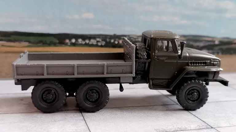Модель RUSAM-URAL-4320-10-950 — Автомобиль УРАЛ тягач (балластный) низкий борт (серый), 1:87, 1977, СССР.